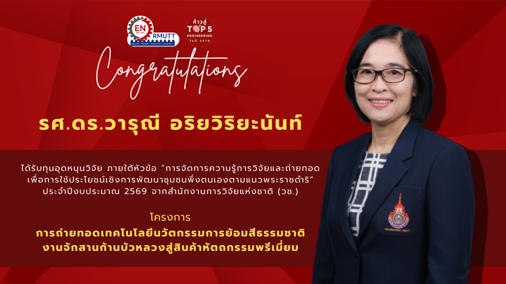 ขอแสดงความยินดีกับ ดร.วิณิตา ขำอินทร์ ได้รับอนุมัติทุนจากหน่วยบริหารและจัดการทุนด้านการพัฒนากำลังคนและทุนด้านการพัฒนาสถาบันอุดมศึกษาการวิจัยและสร้างนวัตกรรม (บพค.)
