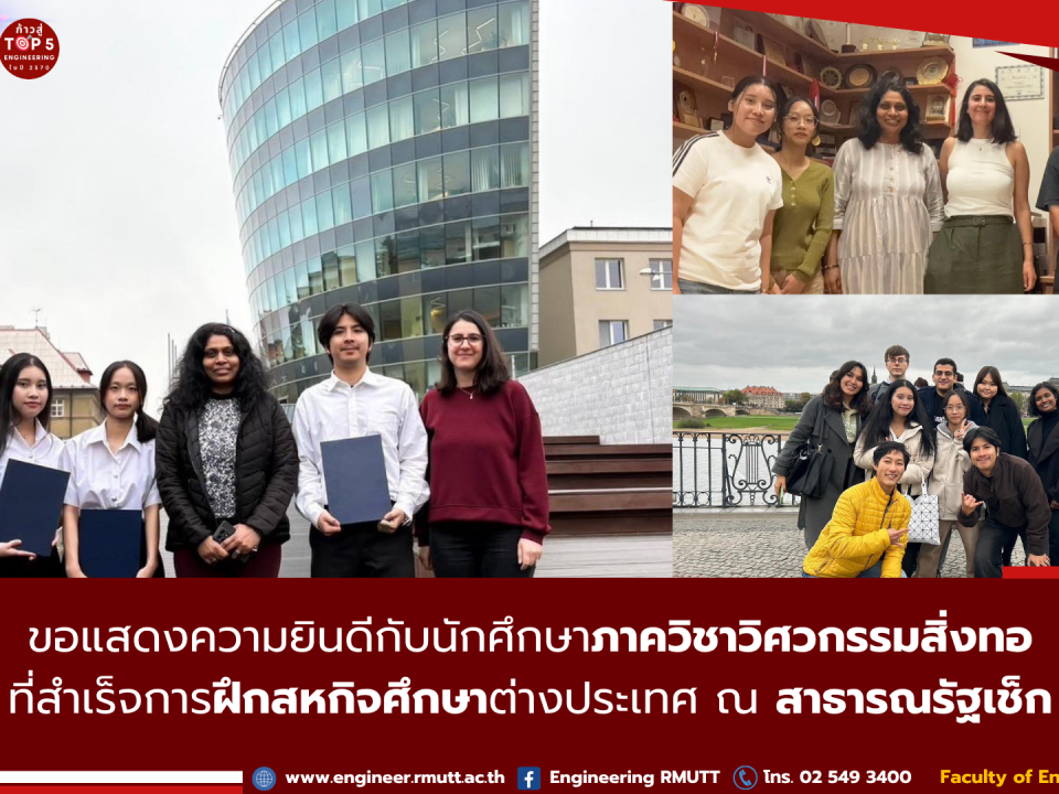 เมษายน 19, 2024มหาวิทยาลัยเทคโนโลยีราชมงคลธัญบุรี ดำเนินการโดย สถาบันจิงซื่อ ร่วมส่งนักศึกษา จำนวน 15 ราย จากต้นสังกัดคณะวิศวกรรมศาสตร์ คณะครุศาสตร์อุตสาหกรรม และคณะวิทยาศาสตร์และเทคโนโลยี เข้าร่วมโครงการฝึกอบรมเชิงปฏิบัติการด้าน 5G Communication (ระยะสั้น 3 เดือน) ณ Nanjing Vocational College of Information Technology ด้วยทุนสนับสนุนกองทุนพัฒนานักศึกษา มหาวิทยาลัยเทคโนโลยีราชมงคลธัญบุรี