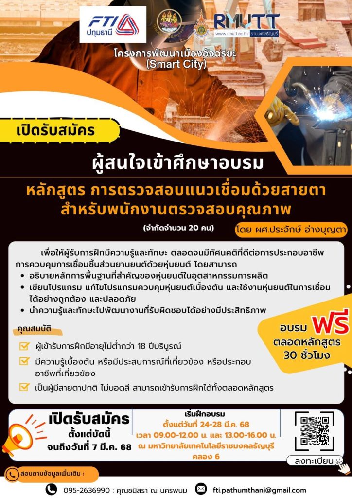 หลักสูตร “การตรวจสอบแนวเชื่อมด้วยสายตาสำหรับพนักงานตรวจสอบคุณภาพ”