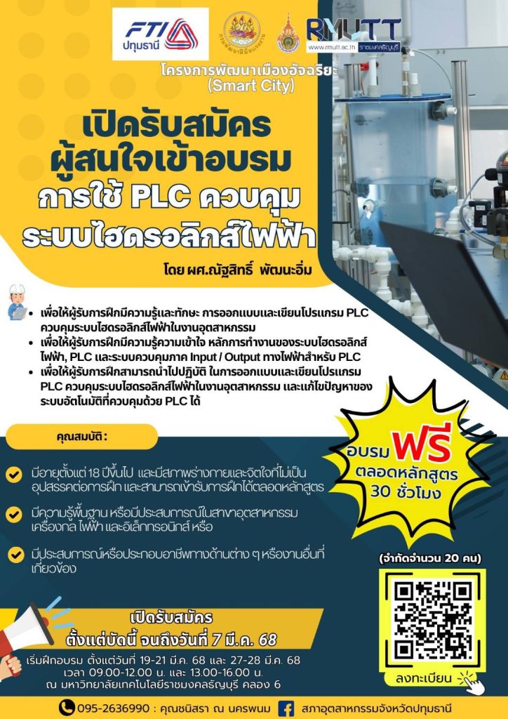 หลักสูตร “การใช้ PLC ควบคุมระบบไฮดรอลิกส์ไฟ้า”