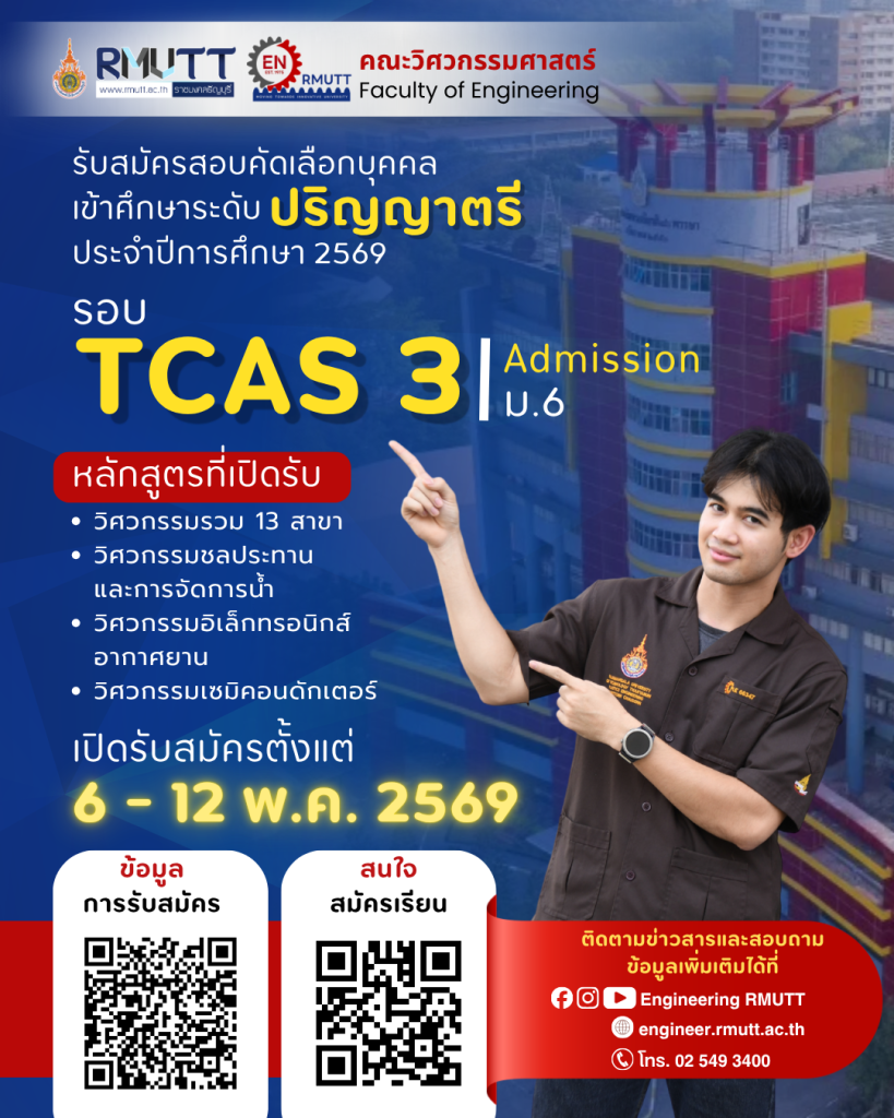 มิถุนายน 24, 2025คณะวิศวกรรมศาสตร์ขอแสดงความยินดีกับอาจารย์ ประจำคณะวิศวกรรมศาสตร์ ที่ได้รับการขึ้นทะเบียนเป็นผู้ประเมินคุณภาพการศึกษาภายใน ระดับหลักสูตร ตามเกณฑ์ AUN-QA (RMUTT-QA Assessor) ที่ขึ้นทะเบียน มทร.ธัญบุรี