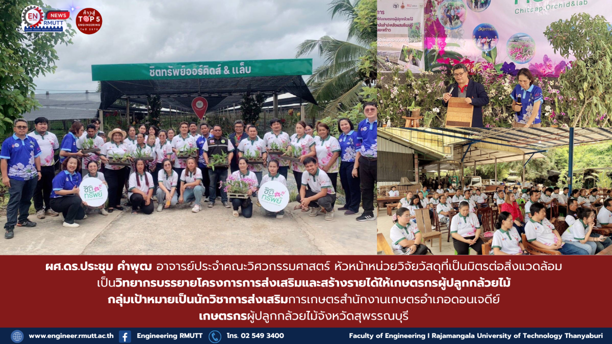 เมื่อวันที่ 25 กันยายน 2568 ผู้ช่วยศาสตราจารย์ ดร.ประชุม คำพุฒ อาจารย์ประจำคณะวิศวกรรมศาสตร์ และหัวหน้า หน่วยวิจัยวัสดุที่เป็นมิตรต่อสิ่งแวดล้อม มหาวิทยาลัยเทคโนโลยีราชมงคลธัญบุรี (มทร.ธัญบุรี) ได้รับเชิญเป็นวิทยากรบรรยายใน โครงการการส่งเสริมและสร้างรายได้ให้เกษตรกรผู้ปลูกกล้วยไม้