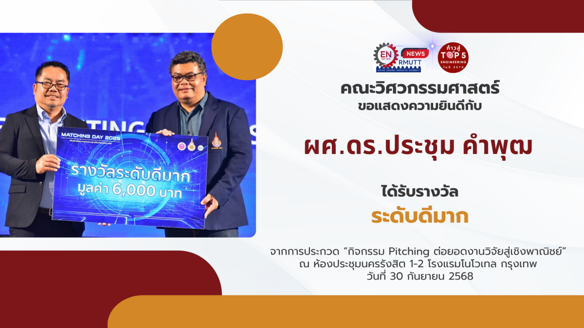 วิศวะ มทร.ธัญบุรี คว้า ‘ระดับดีมาก’ เวที Pitching ต่อยอดงานวิจัยสู่เชิงพาณิชย์