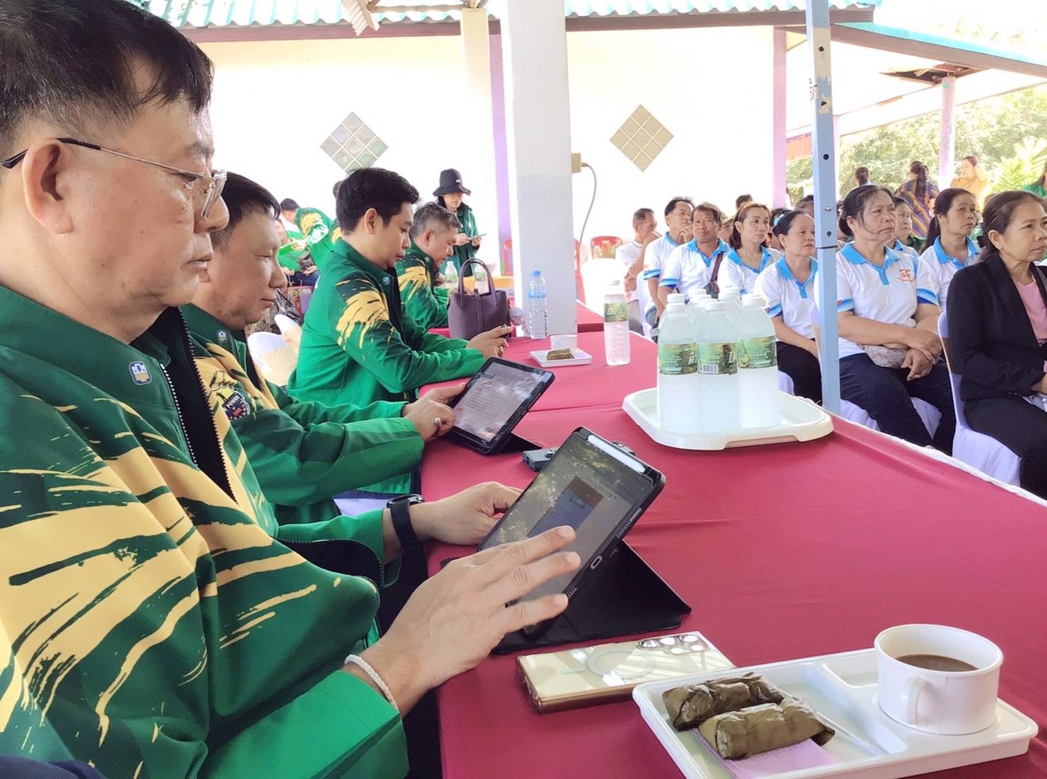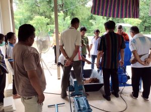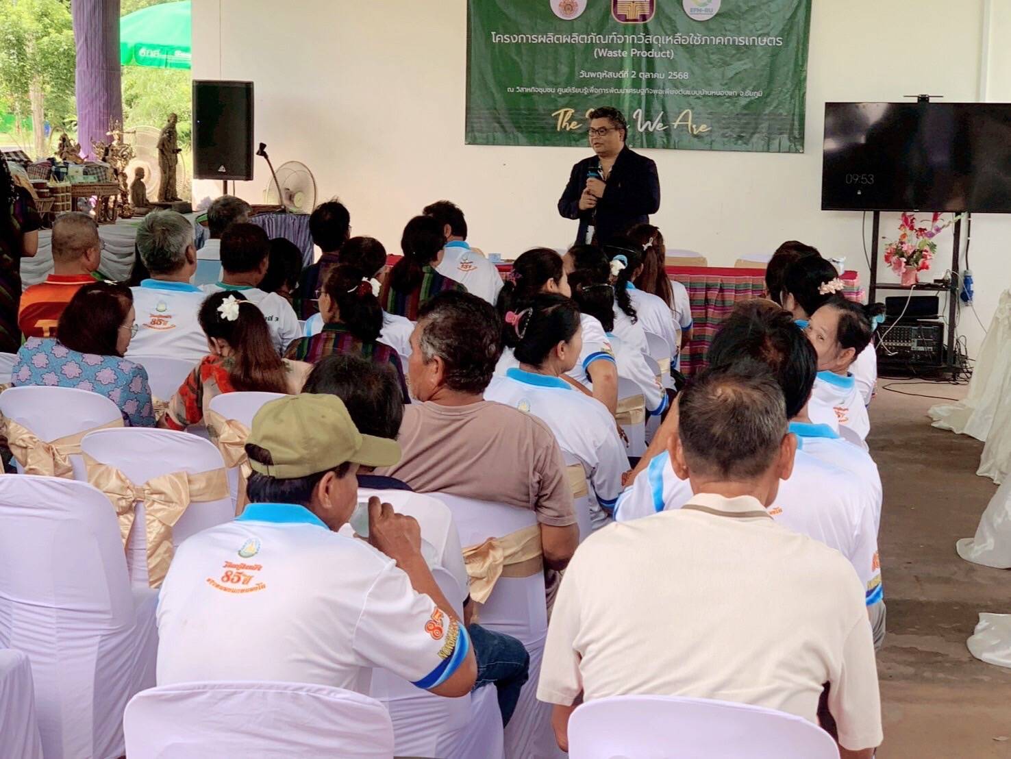 ภายในงาน ผศ.ดร.ประชุม ได้เป็นวิทยากรอบรมเชิงปฏิบัติการให้กับสมาชิกวิสาหกิจชุมชน ในการผลิตผลิตภัณฑ์นวัตกรรมจากวัสดุเหลือใช้ภาคการเกษตร ได้แก่ อิฐบล็อกประสาน และ กระถางย่อยสลายได้ ซึ่งเป็นการเปลี่ยนของเหลือทิ้ง เช่น ซังข้าวโพดหรือฟางข้าว ให้กลายเป็นผลิตภัณฑ์มูลค่าสูง .