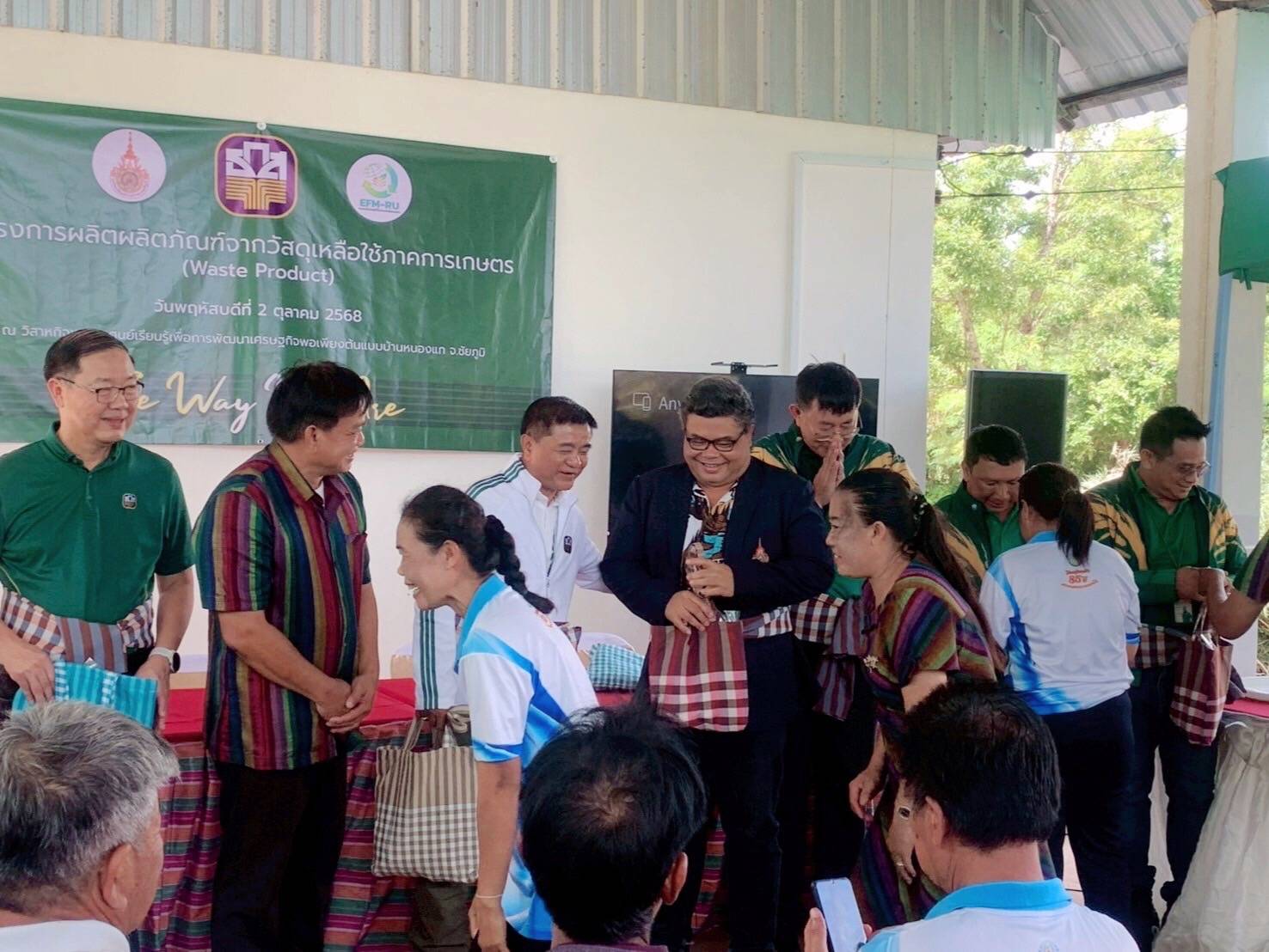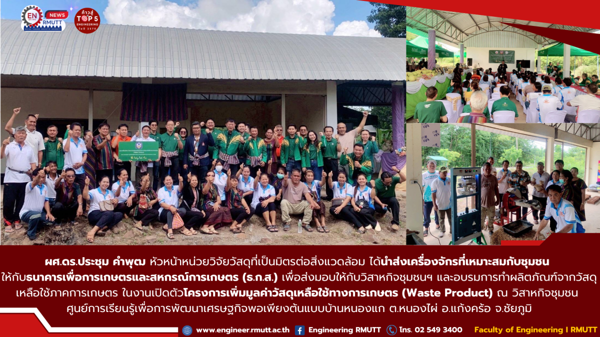 เมื่อวันที่ 2 ตุลาคม 2568 ผู้ช่วยศาสตราจารย์ ดร.ประชุม คำพุฒ อาจารย์ประจำคณะวิศวกรรมศาสตร์ และหัวหน้า หน่วยวิจัยวัสดุที่เป็นมิตรต่อสิ่งแวดล้อม มหาวิทยาลัยเทคโนโลยีราชมงคลธัญบุรี (มทร.ธัญบุรี) ได้นำส่งชุดเครื่องจักรที่ออกแบบมาให้เหมาะสมกับวิสาหกิจชุมชน ให้กับ ธนาคารเพื่อการเกษตรและสหกรณ์การเกษตร (ธ.ก.ส.)