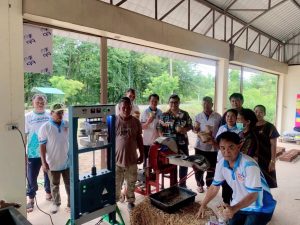 เครื่องจักรชุดนี้ถูกส่งมอบและติดตั้ง ณ วิสาหกิจชุมชน ศูนย์การเรียนรู้เพื่อการพัฒนาเศรษฐกิจพอเพียงต้นแบบบ้านหนองแก ต.หนองไผ่ อ.แก้งคร้อ จ.ชัยภูมิ ในงานเปิดตัว โครงการเพิ่มมูลค่าวัสดุเหลือใช้ทางการเกษตร (Waste Product) โดยมีวัตถุประสงค์เพื่อส่งเสริมการสร้างอาชีพและลดผลกระทบต่อสิ่งแวดล้อม