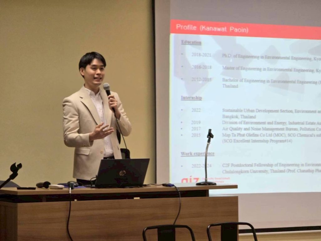 - ดร.คณวัฒน์ เปาอินทร นักวิจัยและผู้ประสานงานโครงการ GIZ Thailand ได้บรรยายความสำคัญของ Green Space และความท้าทายในการพัฒนาพื้นที่สีเขียวในกรุงเทพมหานคร เพื่อลดมลภาวะและผลกระทบต่อสุขภาพ นอกจากนี้ยังให้ความรู้เชิงลึกเกี่ยวกับปรากฏการณ์ เกราะความร้อนในเมือง (Urban Heat Island) การปรับตัวต่อ Climate Change และนโยบายสิ่งแวดล้อมที่จำเป็นต่อการพัฒนาประเทศ