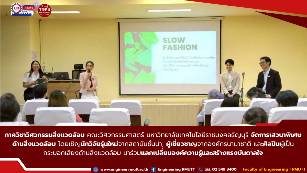 เมื่อวันที่ 3 ตุลาคม 2568 ภาควิชาวิศวกรรมสิ่งแวดล้อม คณะวิศวกรรมศาสตร์ มหาวิทยาลัยเทคโนโลยีราชมงคลธัญบุรี (มทร.ธัญบุรี) จัดการเสวนาพิเศษด้านสิ่งแวดล้อม โดยเชิญนักวิจัยรุ่นใหม่จากสถาบันชั้นนำ, ผู้เชี่ยวชาญจากองค์กรนานาชาติ และศิลปินผู้เป็นกระบอกเสียงด้านสิ่งแวดล้อม มาร่วมแลกเปลี่ยนองค์ความรู้และสร้างแรงบันดาลใจ