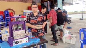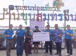 ในการตรวจเยี่ยมโครงการฯ ครั้งนี้ บริษัท อริยะสุทธิ อินเตอร์เทรด จำกัด ซึ่งเป็นผู้ประกอบการที่ปรึกษาโครงการ ได้แสดงความมุ่งมั่นในการสนับสนุนนวัตกรรมเพื่อสังคม โดยได้จัดซื้อผลิตภัณฑ์ “พลาสโตน” มูลค่า 10,000 บาท จากชุมชนเพื่อนำไปใช้ในการ ตกแต่งภูมิทัศน์ของบริษัทฯ ซึ่งถือเป็นการสร้างความเชื่อมั่นในคุณภาพของสินค้าชุมชน และเป็นช่องทางในการสร้างรายได้อย่างยั่งยืนให้กับชาวบ้านขุนสมุทรจีน