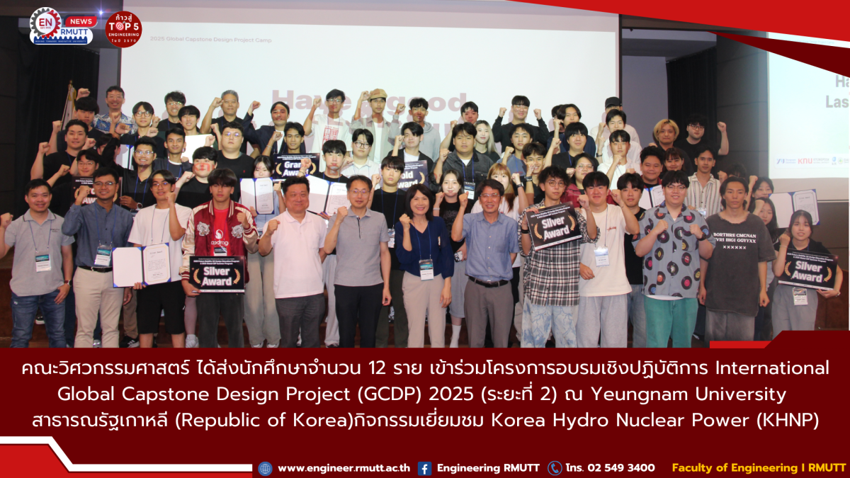 ตุลาคม 20, 2025วิศวะ มทร.ธัญบุรี ลุยเกาหลีใต้! ร่วมโครงการ GCDP 2025 เยือน KHNP ยกระดับนวัตกรรมพลังงานยั่งยืน