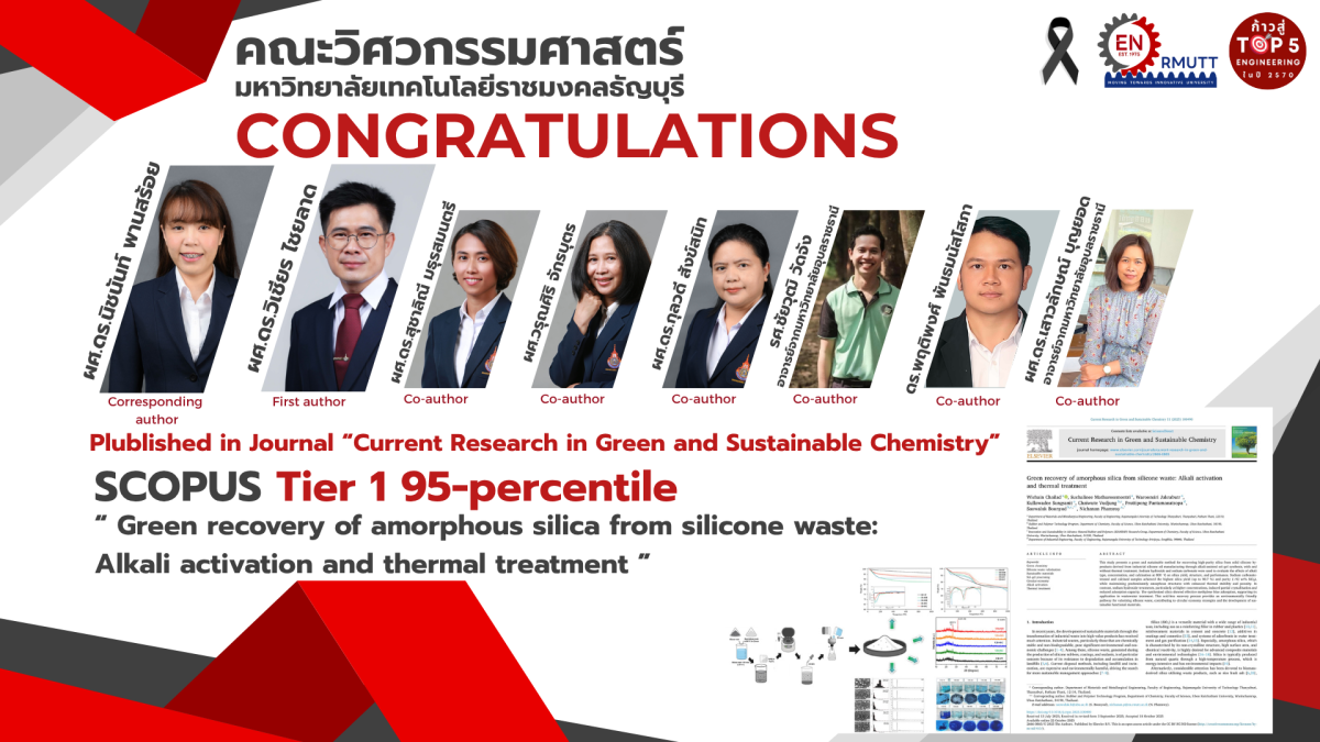 ในหัวข้อ “ Green recovery of amorphous silica from silicone waste: Alkali activation and thermal treatment ”