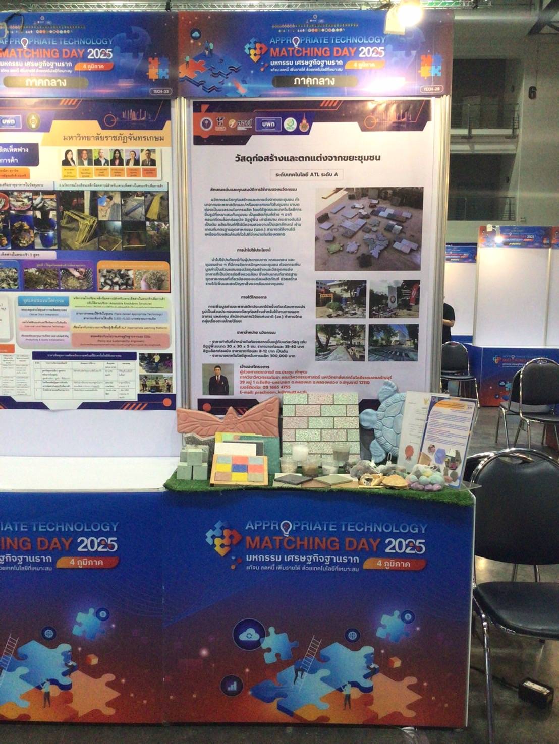 คณะวิศวกรรมศาสตร์ ภาควิชาวิศวกรรมโยธา โดย หน่วยวิจัยวัสดุที่เป็นมิตรต่อสิ่งแวดล้อม ได้นำผลงานวิจัยด้าน Appropriate Technology จำนวน 2 ผลงาน เข้าร่วมจัดแสดงในงาน “Appropriate Technology MATCHING DAY 2025” ซึ่งจัดขึ้น ณ Hall 5 อิมแพค เมืองทองธานี เมื่อวันที่ 26 พฤศจิกายน 2568