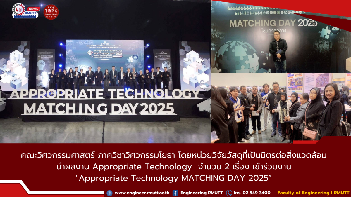 พฤศจิกายน 27, 2025คณะวิศวกรรมศาสตร์ มทร.ธัญบุรี นำผลงาน Appropriate Technology ร่วมงาน “Appropriate Technology MATCHING DAY 2025”
