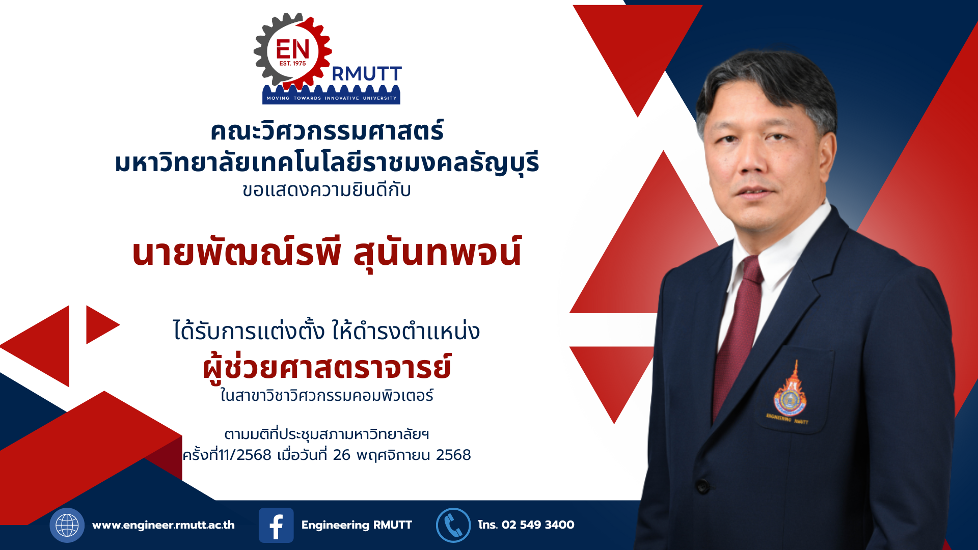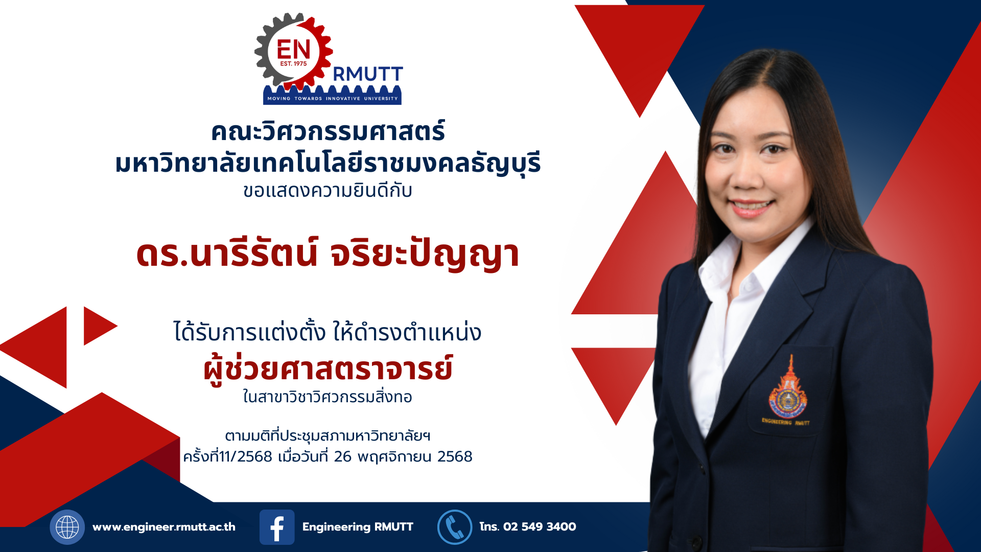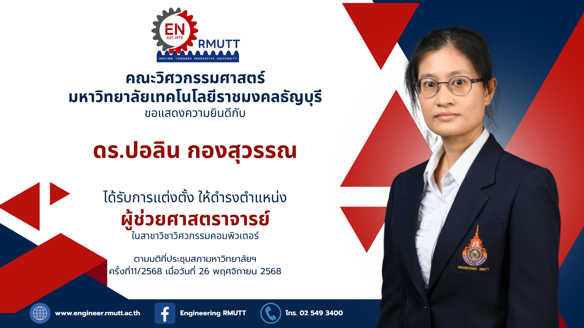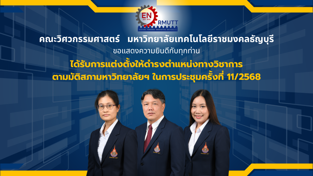 คณะวิศวกรรมศาสตร์ ขอแสดงความยินดีกับบุคลากรสายวิชาการในโอกาสได้รับการแต่งตั้งให้ดำรงตำแหน่งทางวิชาการ ตำแหน่งรองศาสตราจารย์ ตามมติที่ประชุมสภามหาวิทยาลัย ครั้งที่ 11/2568 เมื่อวันที่ 26 พฤศจิกายน 2568