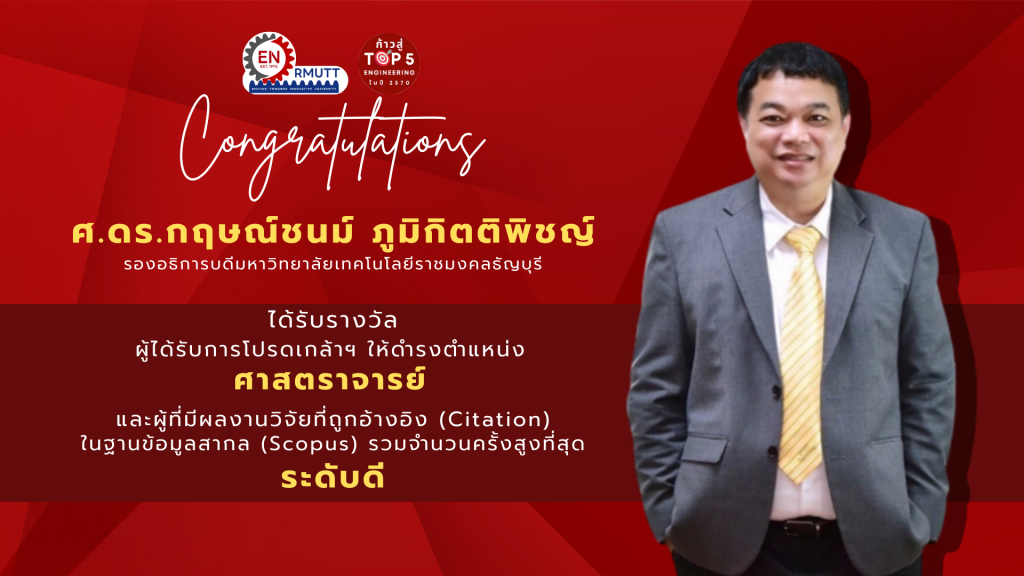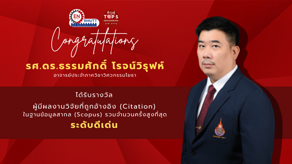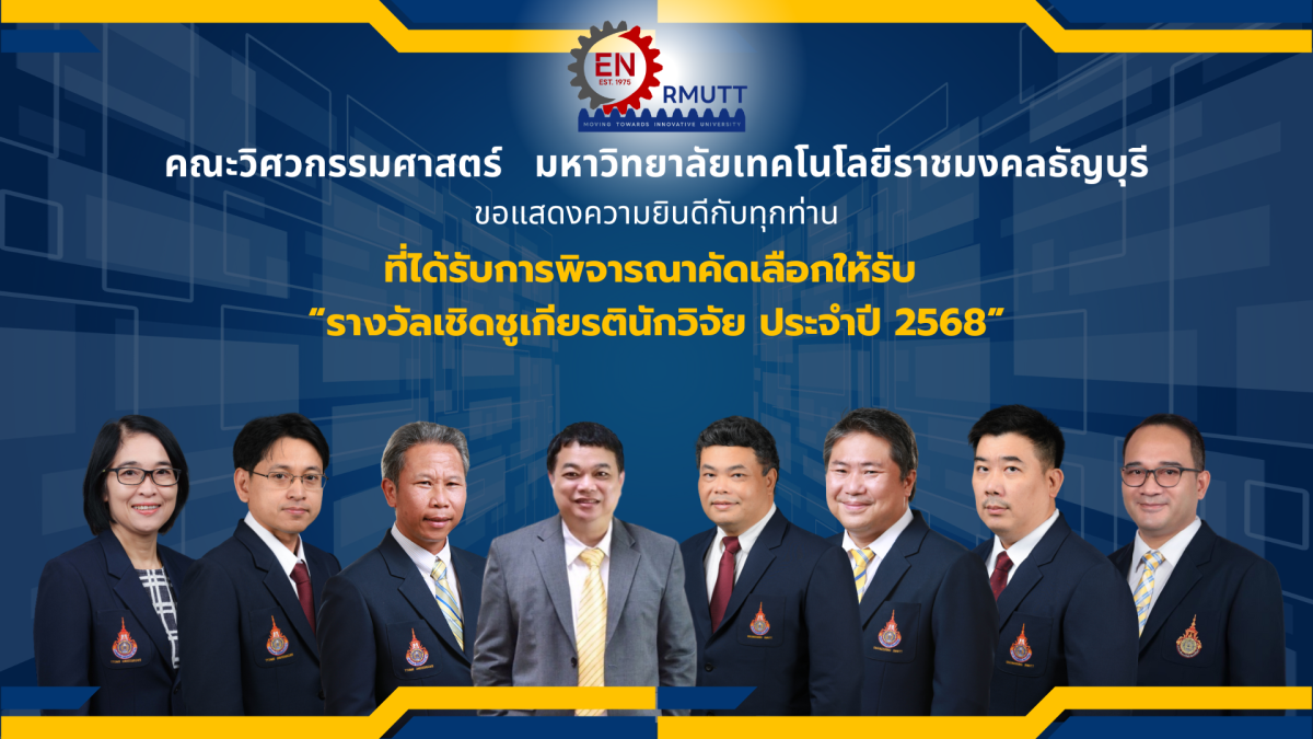 คณะวิศวกรรมศาสตร์ มหาวิทยาลัยเทคโนโลยีราชมงคลธัญบุรี ขอแสดงความยินดีกับ อาจารย์นักวิจัยทุกท่าน ที่ได้รับการพิจารณาคัดเลือกให้รับ “รางวัลเชิดชูเกียรตินักวิจัย ประจำปี 2568”