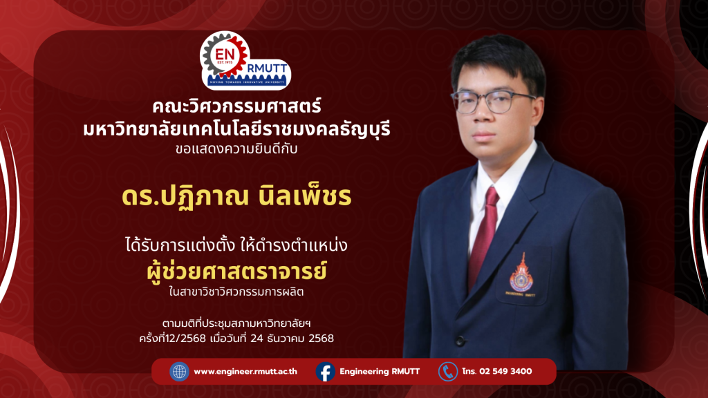 ธันวาคม 25, 2025🌟 คณะวิศวกรรมศาสตร์ แสดงความยินดีกับบุคลากรสายวิชาการในโอกาสได้รับการแต่งตั้งให้ดำรงตำแหน่งทางวิชาการ
