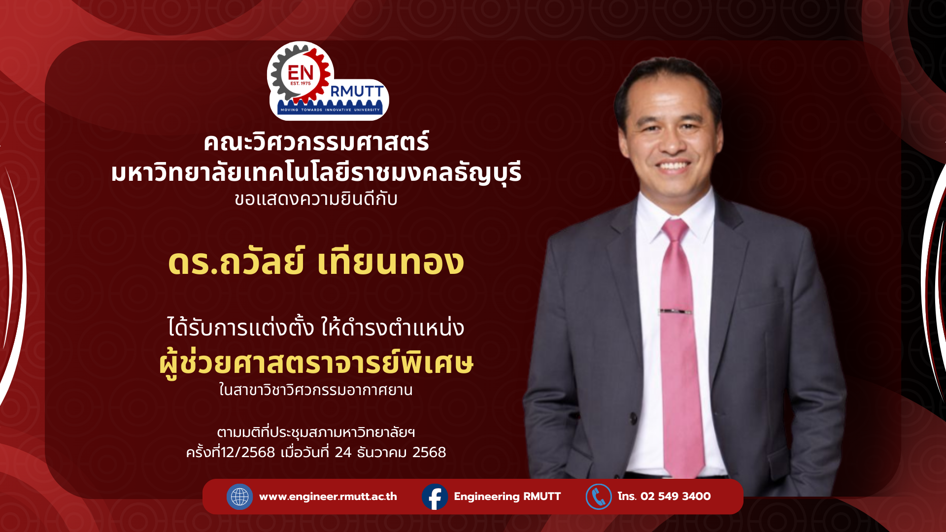 ธันวาคม 25, 2025🌟 คณะวิศวกรรมศาสตร์ แสดงความยินดีกับบุคลากรสายวิชาการในโอกาสได้รับการแต่งตั้งให้ดำรงตำแหน่งทางวิชาการ
