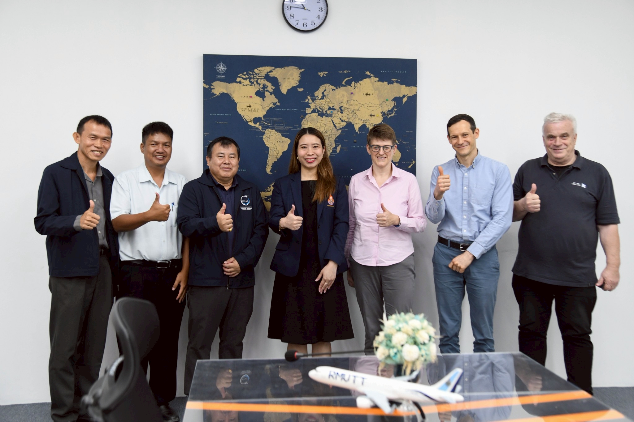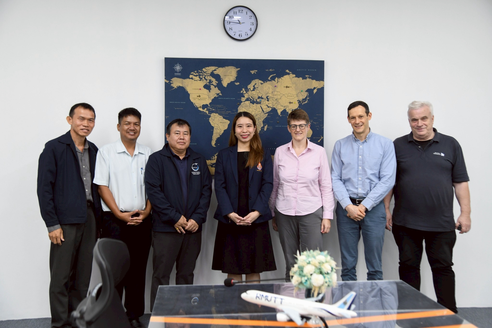 การตรวจประเมินครั้งนี้ได้รับเกียรติจาก Mr. Laurenz Detsch (Aero Bildung GmbH เยอรมนี), Mr. Peter Lindberg (Aero Bildung GmbH ประเทศไทย) และ Mrs. Wiebke Reerink ผู้แทนจาก LBA/EASA เพื่อประเมินและต่อใบอนุญาตให้ มทร.ธัญบุรี คงสถานะการเป็น EASA Examination Center ซึ่งเป็นศูนย์สอบมาตรฐานสากลด้านการบิน โดยมีทีมคณาจารย์จากภาควิชาวิศวกรรมอิเล็กทรอนิกส์และโทรคมนาคมเข้าร่วมสนับสนุนข้อมูล เพื่อสะท้อนความพร้อมของระบบสนับสนุนและบุคลากรในการยกระดับมาตรฐานด้านการบินของมหาวิทยาลัยสู่ระดับนานาชาติ