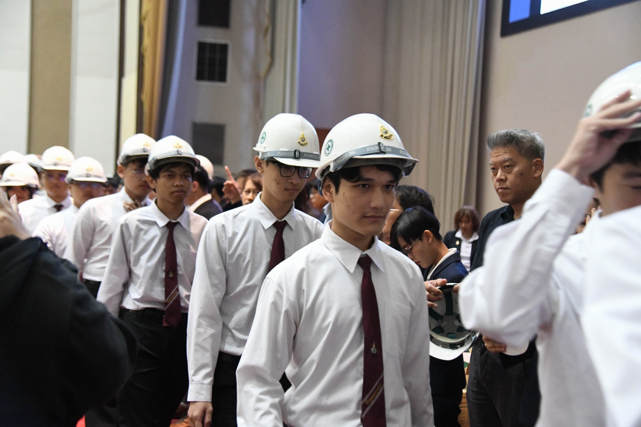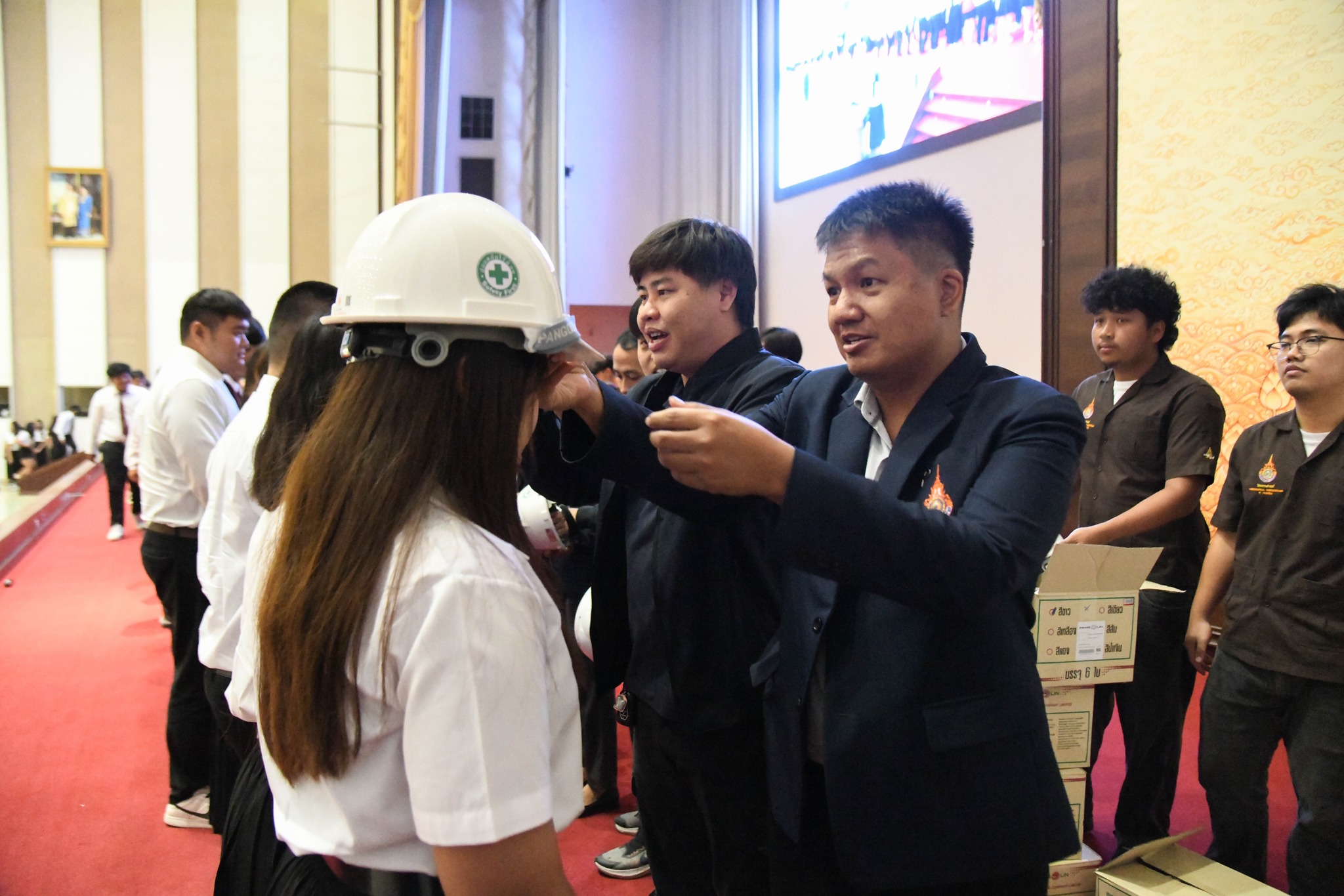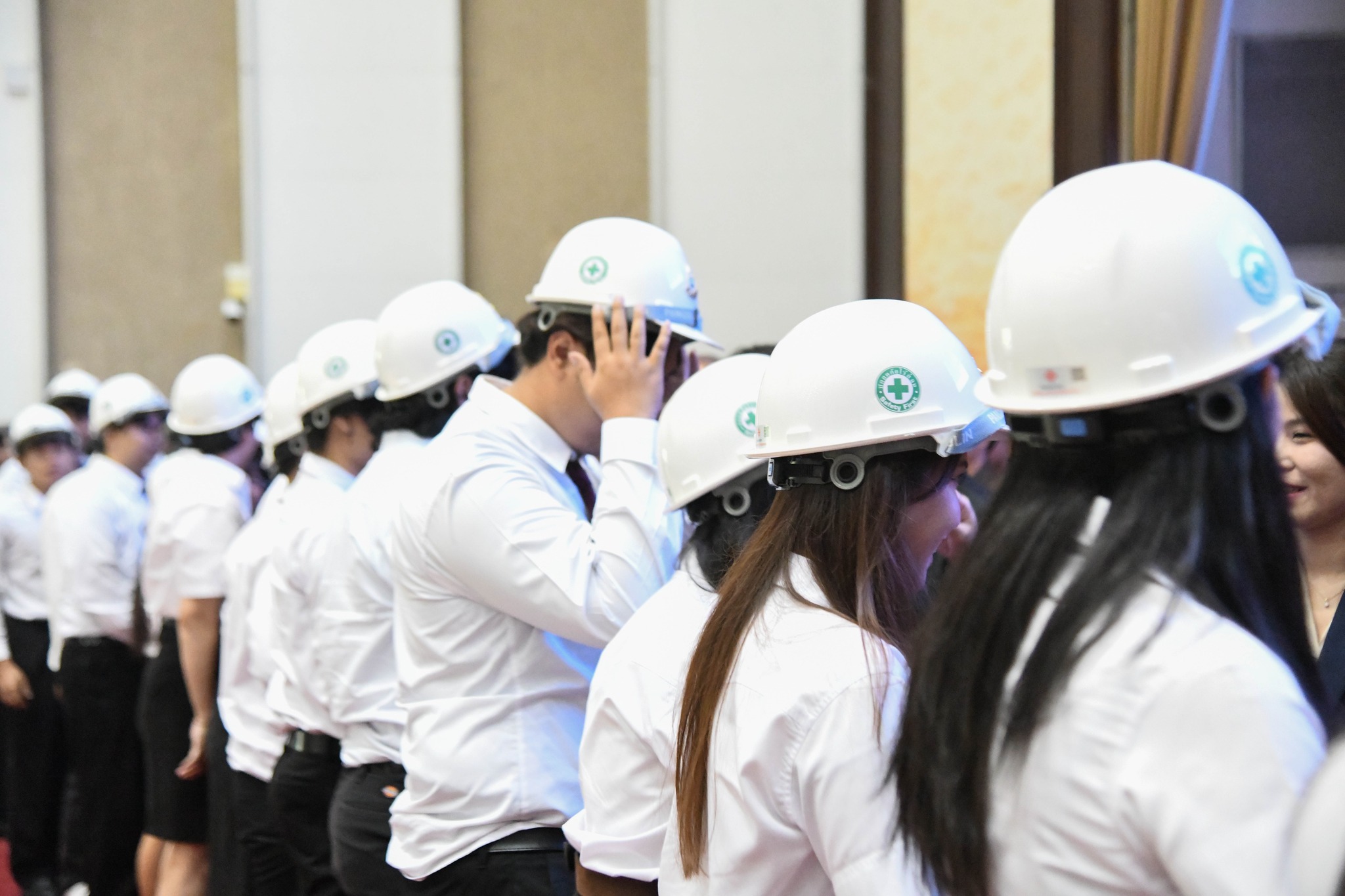 ปิดท้ายด้วยพิธีมอบหมวกวิศวกร เพื่อเป็นสัญลักษณ์แห่งความภาคภูมิใจและความรับผิดชอบในวิชาชีพที่นักศึกษาพึงมีต่อสังคมในฐานะวิศวกรคุณภาพรุ่นต่อไป