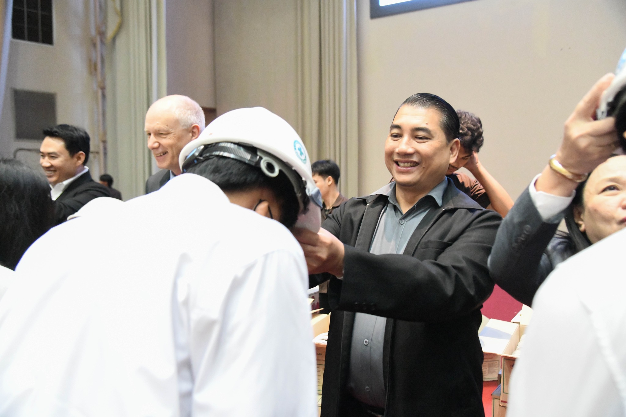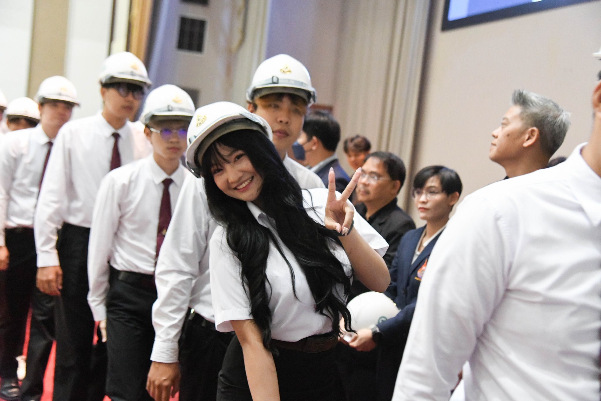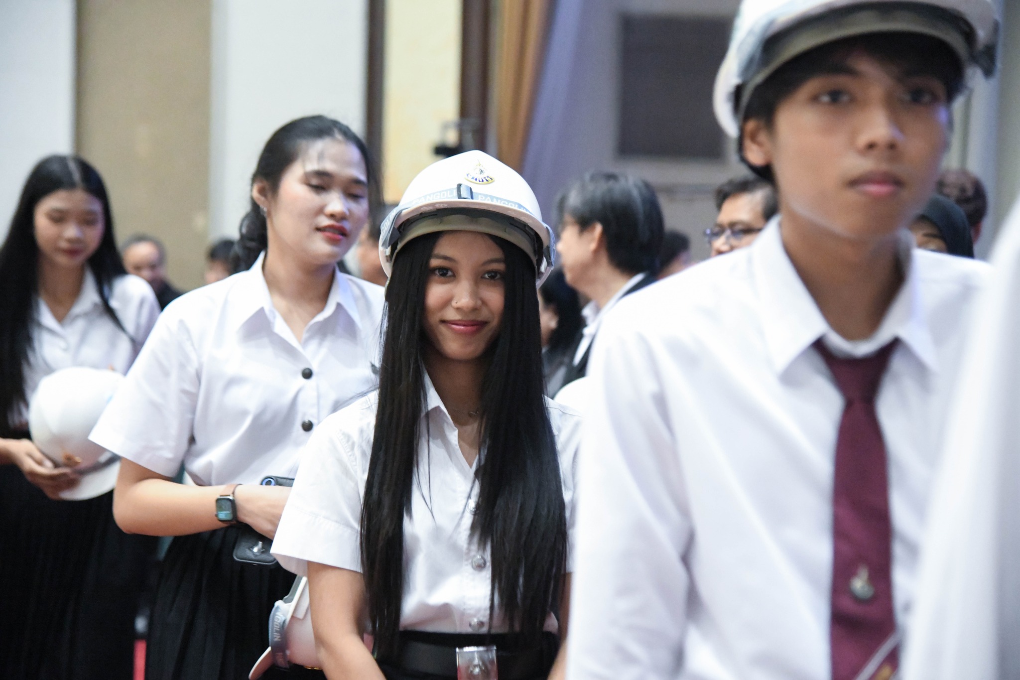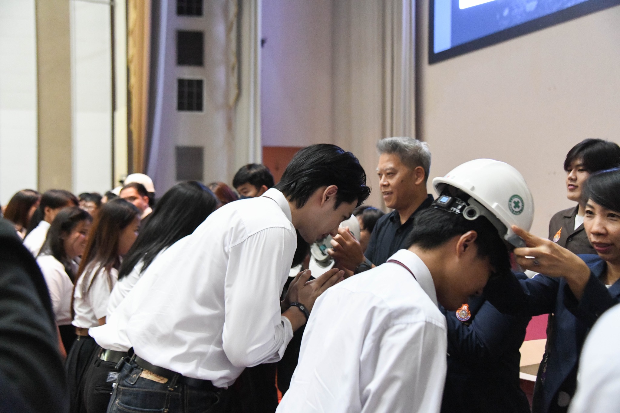 ปิดท้ายด้วยพิธีมอบหมวกวิศวกร เพื่อเป็นสัญลักษณ์แห่งความภาคภูมิใจและความรับผิดชอบในวิชาชีพที่นักศึกษาพึงมีต่อสังคมในฐานะวิศวกรคุณภาพรุ่นต่อไป