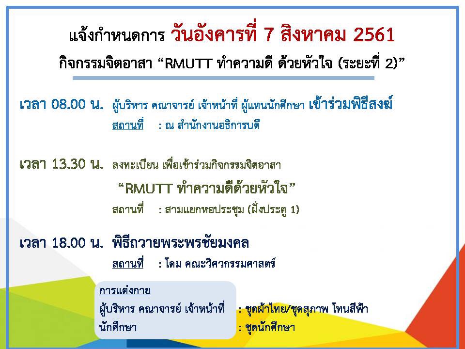 ประกวดราคาซื้อระบบอิเล็กทรอนิกส์กำลังเพื่ออุตสาหกรรมอิเล็กทรอนิกส์อัจฉริยะด้วยวิธีประกวดราคาอิเล็กทรอนิกส์ (e-bidding)สิงหาคม 1, 2018รอยยิ้มนักสู้ ดอกเตอร์จากกองขยะสิงหาคม 4, 2018 Published by ผู้ดูแล คณะวิศวกรรมศาสตร์ on สิงหาคม 2, 2018 Categories ข่าวกิจกรรม Tags Share ผู้ดูแล คณะวิศวกรรมศาสตร์ Related postsมีนาคม 13, 2026วิศวะคอมพิวเตอร์ มทร.ธัญบุรี ศึกษาดูงาน SYNERGY GROUP เสริมสร้างแรงบันดาลใจด้าน AIoT และเซมิคอนดักเตอร์Read moreมีนาคม 11, 2026วิศวกรรมอุตสาหการ มทร.ธัญบุรี นำนักศึกษาศึกษาดูงานคลังสินค้าออฟฟิศเมท เสริมทักษะระบบ WMS และโลจิสติกส์อัตโนมัติRead moreมีนาคม 9, 2026วิศวกรรมเคมีและวัสดุ มทร.ธัญบุรี จัดโครงการถ่ายทอดความรู้ผลิตภัณฑ์ทำความสะอาดเพื่อทำนุบำรุงวัดมูลจินดารามRead more