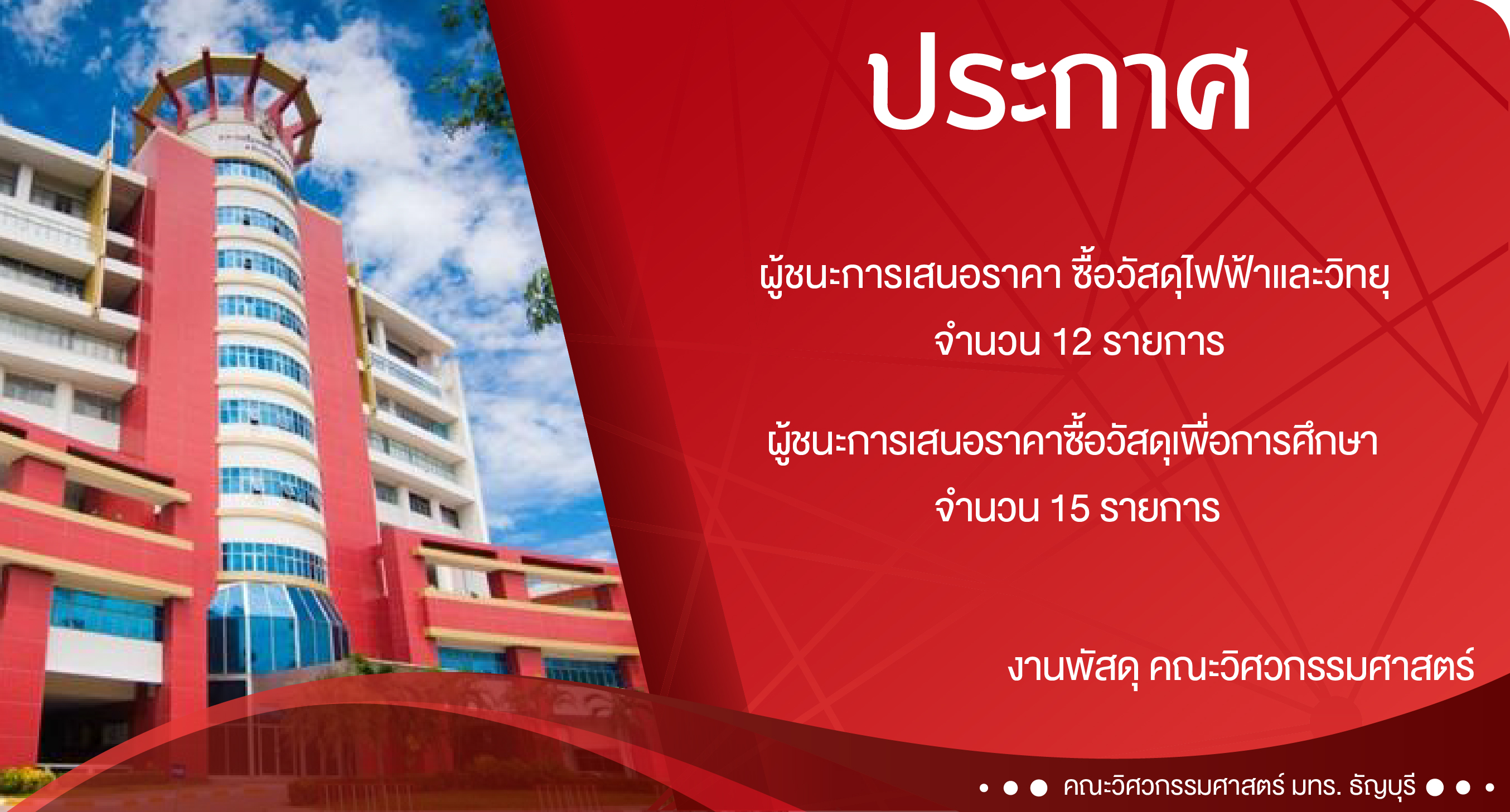 โครงการทูตเยาวชนวิทยาศาสตร์ ประจำปี 2562เมษายน 23, 2019ประกาศจากงานพัสดุ คณะวิศวกรรมศาสตร์เมษายน 24, 2019 Published by ผู้ดูแล คณะวิศวกรรมศาสตร์ on เมษายน 23, 2019 Categories ข่าวกิจกรรม ประชาสัมพันธ์ Tags เว็บไซต์ Share ผู้ดูแล คณะวิศวกรรมศาสตร์ Related postsมีนาคม 13, 2026วิศวะคอมพิวเตอร์ มทร.ธัญบุรี ศึกษาดูงาน SYNERGY GROUP เสริมสร้างแรงบันดาลใจด้าน AIoT และเซมิคอนดักเตอร์Read moreมีนาคม 11, 2026วิศวกรรมอุตสาหการ มทร.ธัญบุรี นำนักศึกษาศึกษาดูงานคลังสินค้าออฟฟิศเมท เสริมทักษะระบบ WMS และโลจิสติกส์อัตโนมัติRead moreมีนาคม 9, 2026วิศวกรรมเคมีและวัสดุ มทร.ธัญบุรี จัดโครงการถ่ายทอดความรู้ผลิตภัณฑ์ทำความสะอาดเพื่อทำนุบำรุงวัดมูลจินดารามRead more