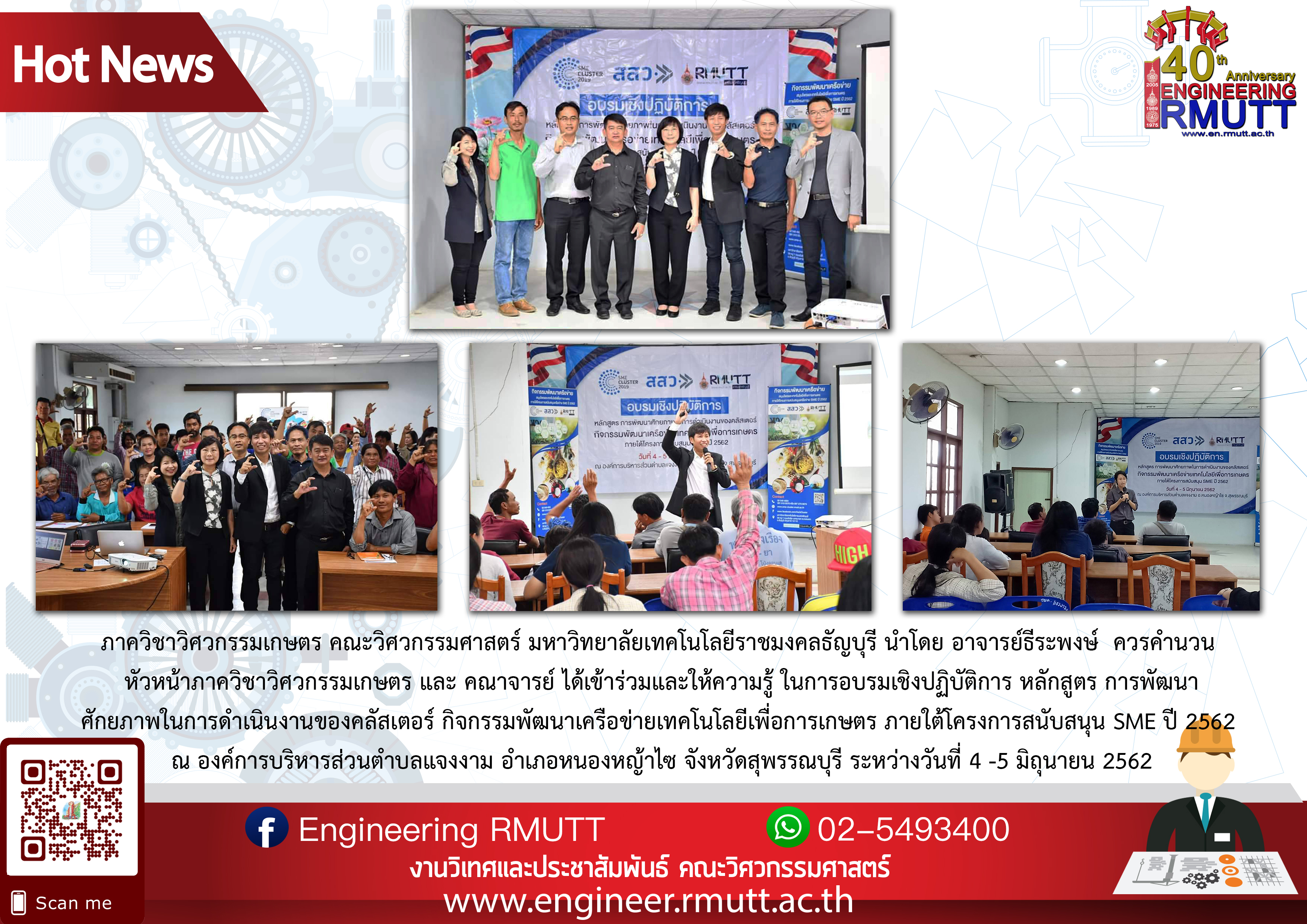 การอบรมเชิงปฏิบัติการ หลักสูตร การพัฒนาศักยภาพในการดำเนินงานของคลัสเตอร์ กิจกรรมพัฒนาเครือข่ายเทคโนโลยีเพื่อการเกษตร ภายใต้โครงการสนับสนุน SME ปี 2562