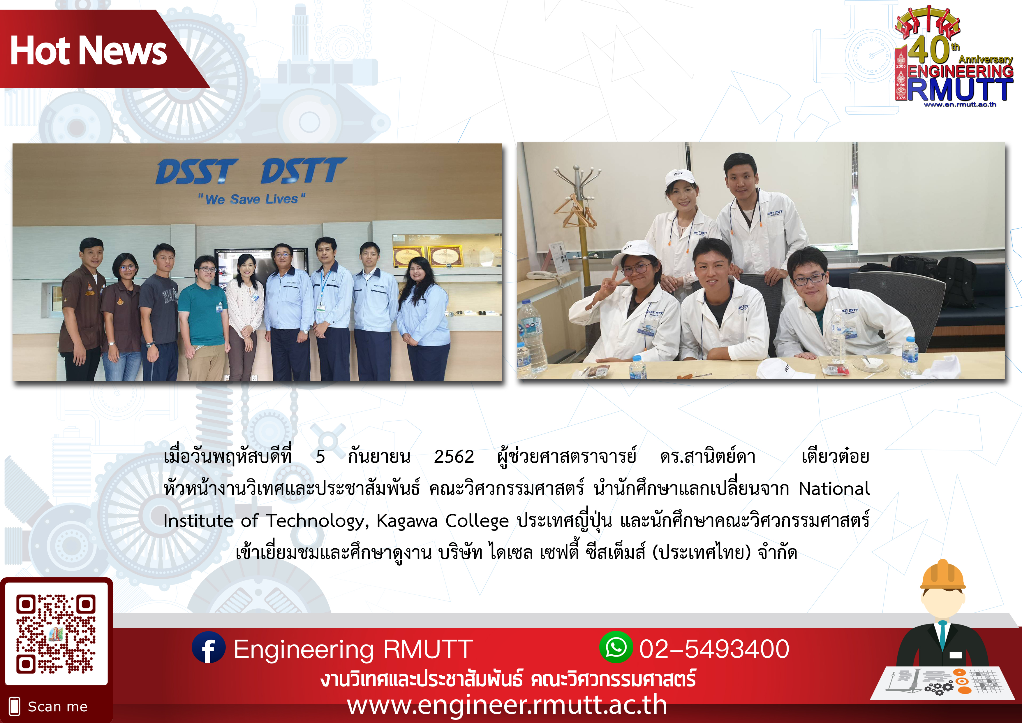 คณะวิศวกรรมศาสตร์ นำนักศึกษาแลกเปลี่ยนจาก National Institute of Technology, Kagawa College ประเทศญี่ปุ่น และนักศึกษาคณะวิศวกรรมศาสตร์ เข้าเยี่ยมชมและศึกษาดูงาน บริษัท ไดเซล เซฟตี้ ซีสเต็มส์ (ประเทศไทย) จำกัด