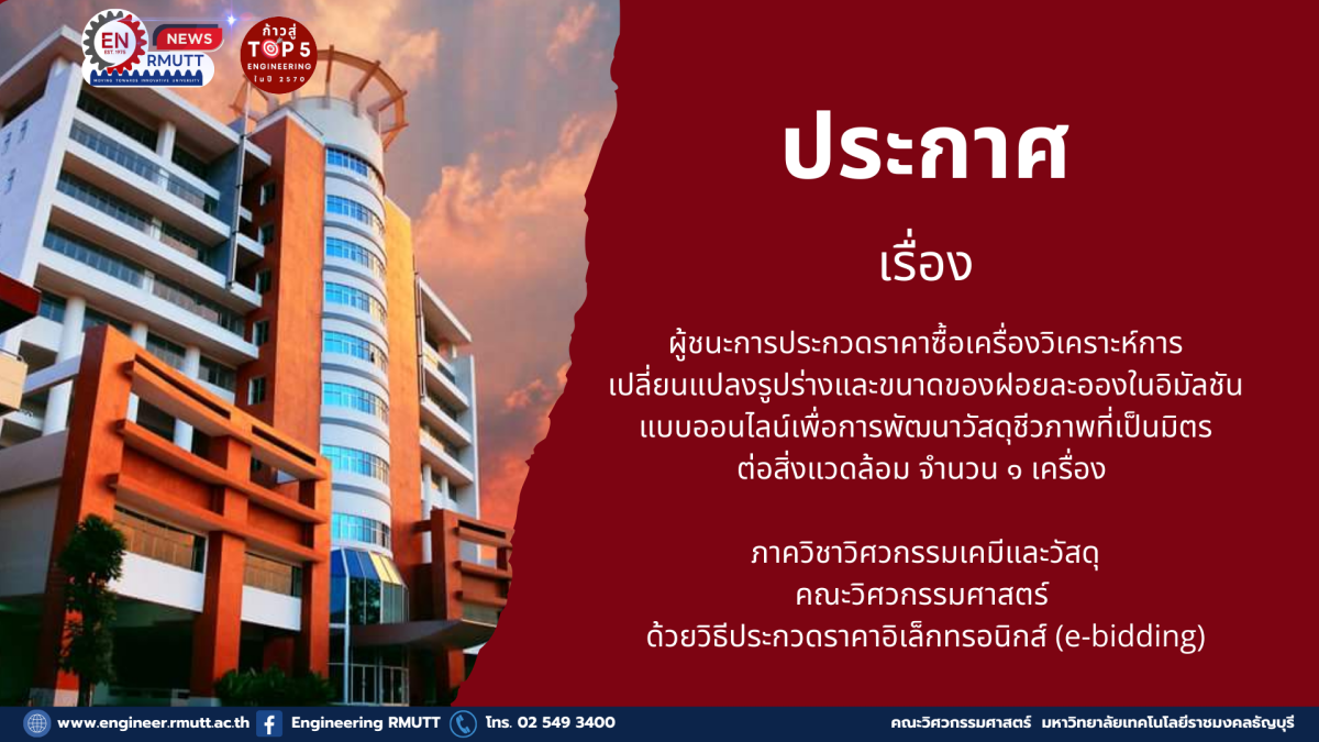 ธันวาคม 12, 2025ยกเลิกประกาศประกวดราคาซื้อชุดครุภัณฑ์ห้องเรียนปัญญาประดิษฐ์ (AI) นวัตกรรมการศึกษา ๖.๐ (Education ๖.๐) เพื่อพัฒนาศักยภาพการแข่งขันระดับสากล จำนวน ๑ ชุด